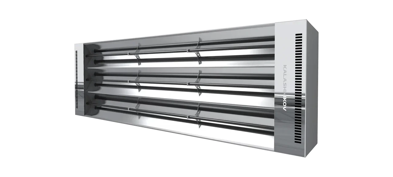 Инфракрасные обогреватели KALASHNIKOV могут устанавливаться под потолком или крепиться к стене под разным углом, обеспечивая направленное из-лучение для создания наиболее оптимальной зоны обогрева.